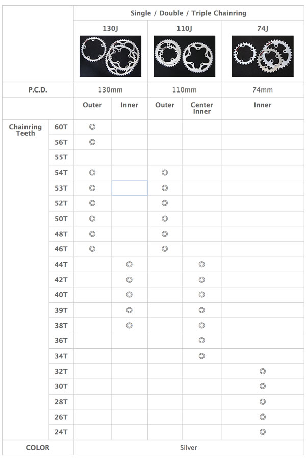 スギノ製のセンター及びインナー・チェーンリングです。・色:シルバー・PCD:130mm・歯数:38, 39, 40T