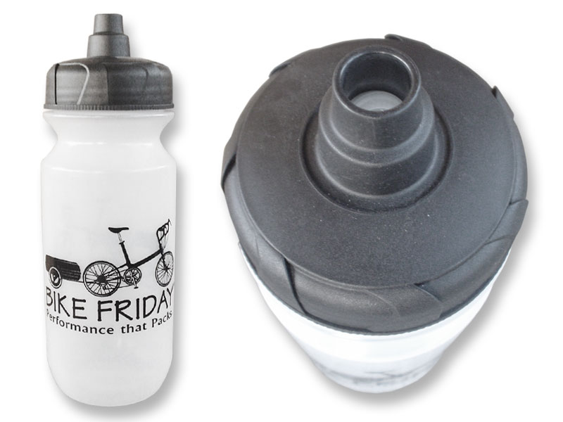 Bike Fridayのロゴ入りボトルです。新型になり、揺らしたり、逆さまにしても、ドリンクが漏れず、ボトルを握った時だけドリンクが出る仕組みの、ジェットバルブが採用されたボトルになっています。・色:半透明・文字色:黒・キャップ色:黒★完売となり、製造中止のため、入荷いたしません。