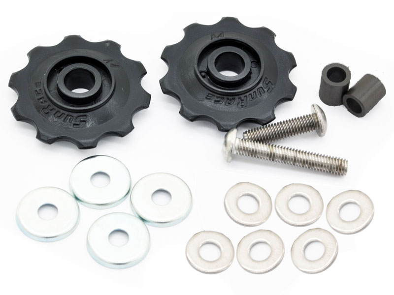 BROMPTONの外装ギアの無いモデル(1速,3速モデル)用のチェーン・テンショナーのアイドラー・プーリーのセットです。プーリーの他に、固定に必要なスペーサー、ボルトやワッシャー類が付属しています。