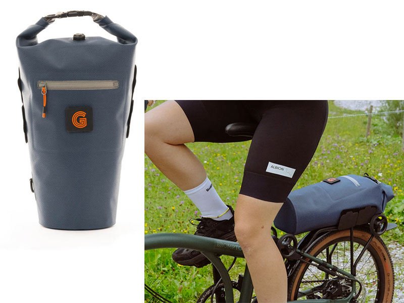 ロール・トップ・ラック・バッグは、ブロンプトンのリア・ラック上に10リットルの耐候性パッキングスペースを提供します。